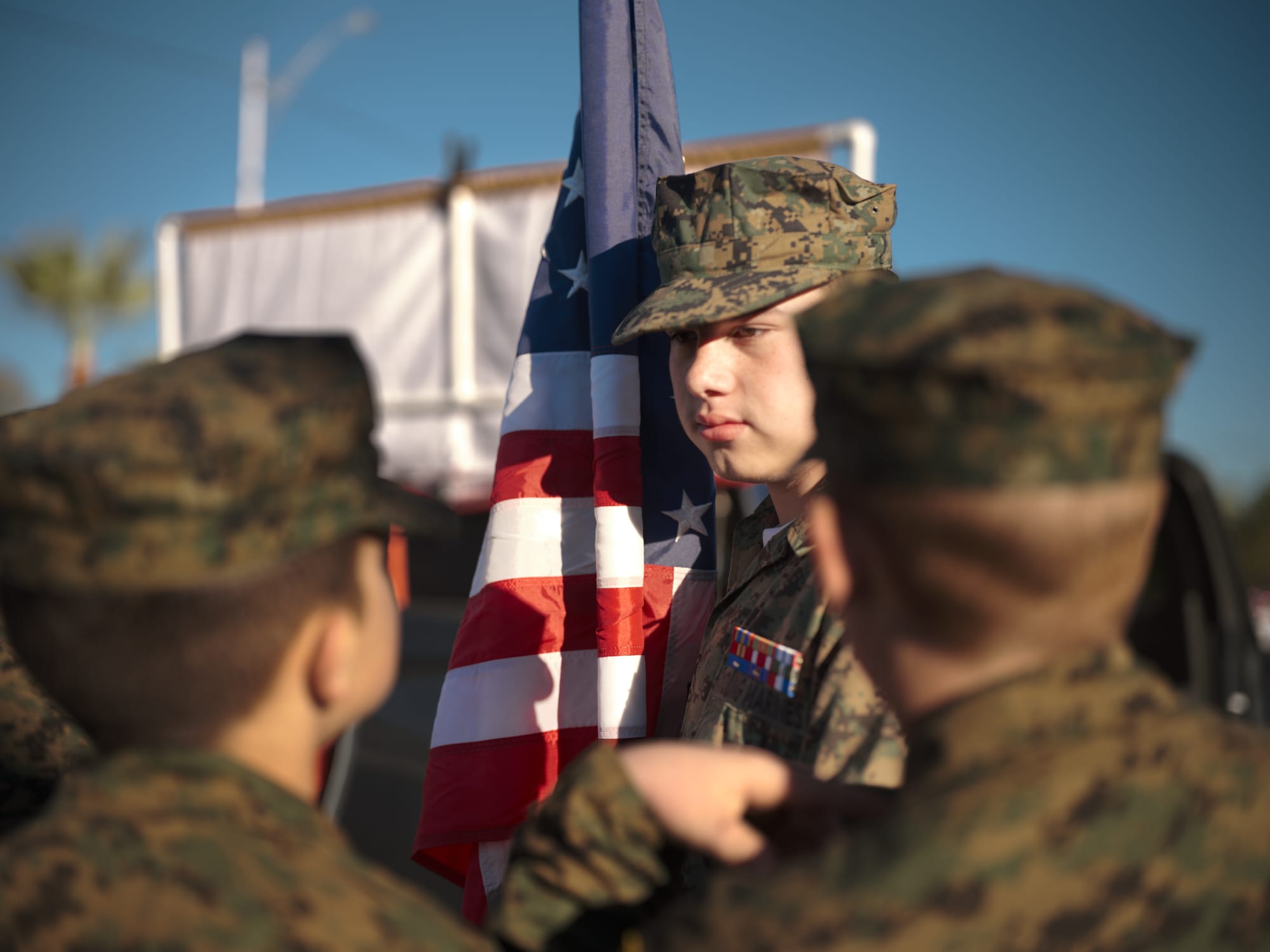 The theme for the parade was 'Cannonballs to Rockets.' It was framed as a celebration of the evolution of long distance bombing as a way to honor of the military. The organizers asked that we wear red, white and blue to visibly demonstrate our support the military. Most of the floats had a military theme and about half the participants were active service members, children in military gear, local police, and border patrol. The only float that had anything to do with western tradition was doing the U.S.A. chant throughout.