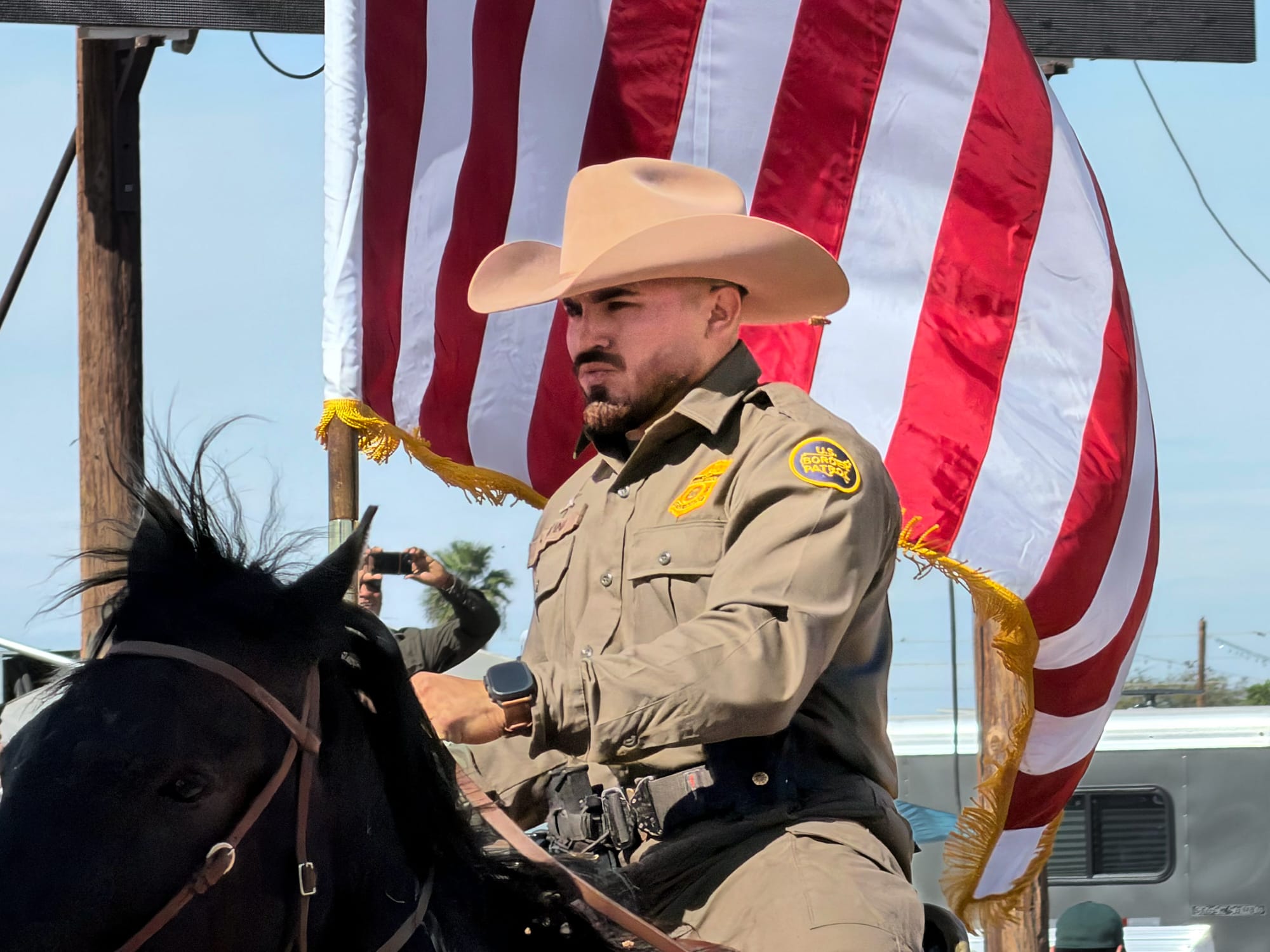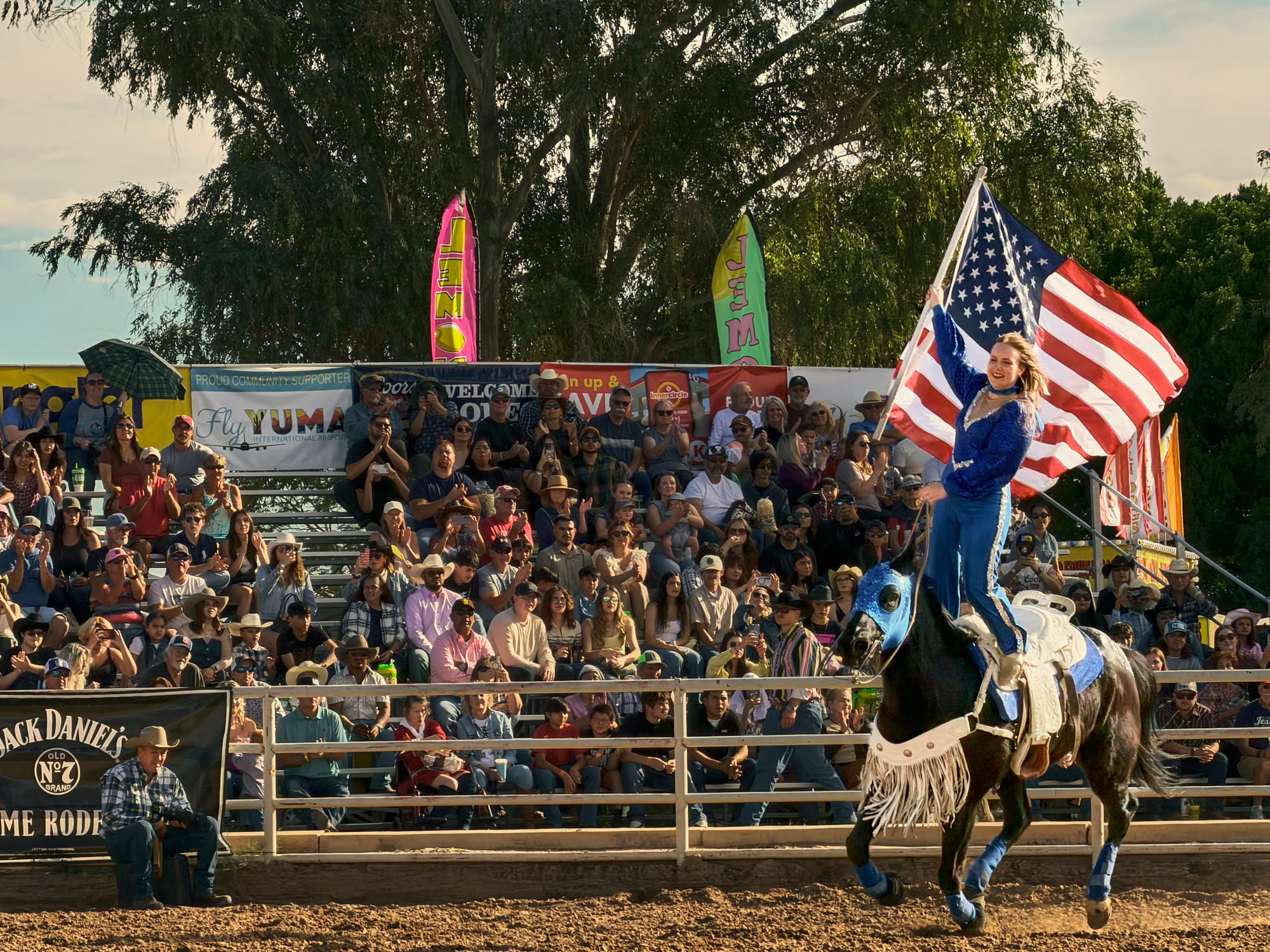 "In today's event you will experience loud noises. There will be extreme athleticism by both humans and livestock. You may also see content that has been deemed politically incorrect. Here in Yuma Arizona we will stand for the American flag and only kneel for the fallen. We will begin with prayer and our focus will be on God. We will honor our flag and pay tribute to our American heroes. If you are sensitive to any of this content we encourage you kindly stand up, exit the facility and enjoy the rest of your evening. For those of you who love your country, love God, and love celebrating the western lifestyle, sit back and hang on tight as the rodeo begins just moments from right now."